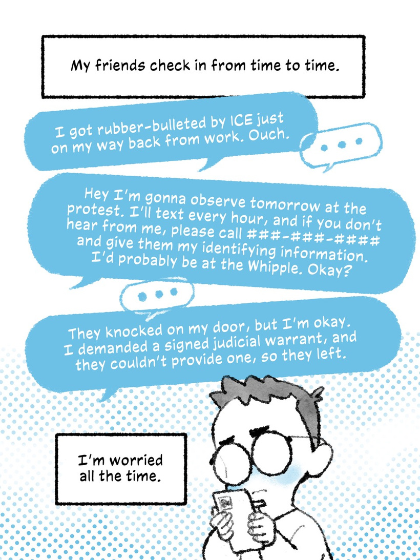 I was asked recently by graphic journalist, editor, and educator Shay Mirk about how I felt about my role as an artist in the middle of the ICE occupation since I started making these journal comics. Here's my long-winded response: